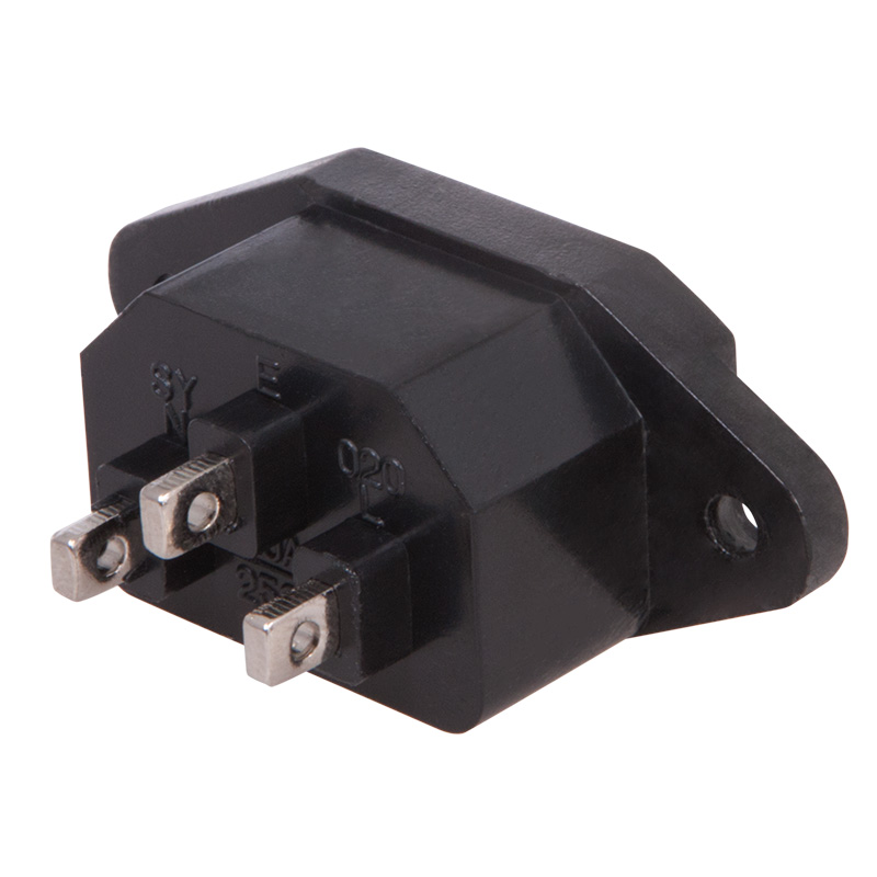 Cетевое гнездо на корпус используется для подключения оборудования к сети переменного тока. Штекер крепится к корпусу с помощью боковыx винтов.