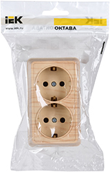 Розетка двухместная IEK РС22-3-ОС "Октава" (16 А) с заземлением, открытой установки, сосна