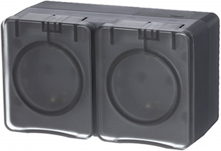 Розетка двухместная Schneider Electric ATN544026 AtlasDesign Profi54 (16 А, IP54) открытой установки, с заземлением, шторками и защитными крышками, антрацит
