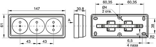 | Тип изделия | розетка силовая без заземляющих контактов, без защитных шторок |
