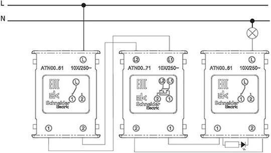Переключатель одноклавишный перекрестный Schneider Electric ATN000171 AtlasDesign (10 АХ) скрытой установки, белый
