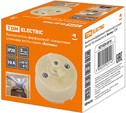 Выключатель поворотный "Болонь" TDM SQ1820-0310 (10 А, IP20, фарфор) открытой установки, с ручкой, слоновая кость