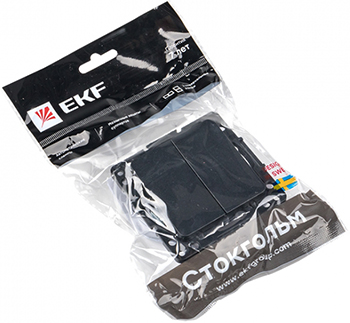 Выключатель двухклавишный EKF EZV10-023-10 "Стокгольм" (10 А, IP20) скрытой установки, черный