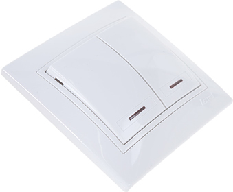 Выключатель двухклавишный Lezard 701-0202-112 Mira (10 А, IP20) скрытой установки, с подсветкой, белый