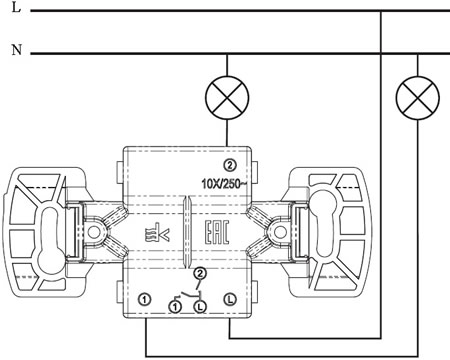| Тип изделия | выключатель 2х1-полюсный |