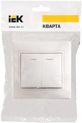 Выключатель двухклавишный "Кварта" ВС10-2-1-КБ IEK (10 А, IP20) скрытой установки, с подсветкой, белый