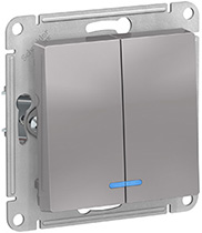 Выключатель двухклавишный Schneider Electric ATN000353 AtlasDesign (10 АХ) скрытой установки, с подсветкой, алюминий
