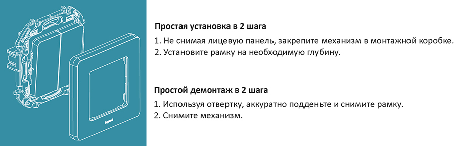 - Компактный механизм с глубиной всего 20 мм комфортно размещается в различных монтажных коробках.