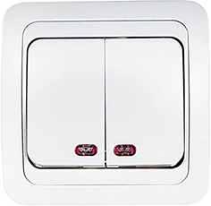 Выключатель двухклавишный IN HOME 2123 Classico (10 А, IP20) скрытой установки, с подсветкой, белый