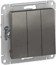 Выключатель трехклавишный Schneider Electric ATN000931 AtlasDesign (10 АХ) скрытой установки, сталь