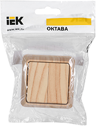 Выключатель двухклавишный IEK ВС20-2-0-ОС "Октава" (10 А) открытой установки, сосна