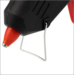 Корпус клеевого пистолета изготовлен из ударопрочной пластмассы, имеет скобу для надежной установки в нерабочем положении.
