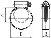 - Конструкция червячного узла обеспечивает необходимый зазор и оптимальный угол резьбы в паре "винт - лента", что позволяет равномерно распределить усилие сжатия по периметру и увеличить предельный момент затяжки.