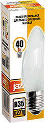 Лампа накаливания Jazzway B35 240V 40W E27 Frosted (свеча, E27, 40 Вт, 350 лм), матовый