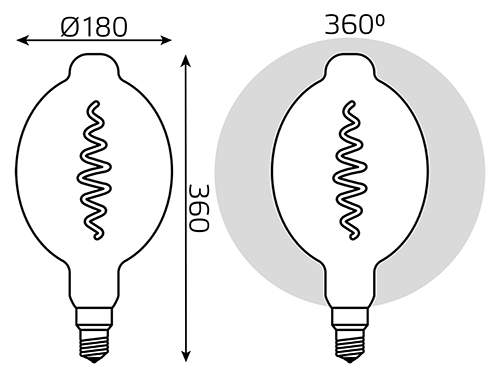 Лампа светодиодная Gauss Filament BT180 8,5W 165lm 1800К Е27 Gray Flexible LED (8,5 Вт, 165 лм, серая колба)