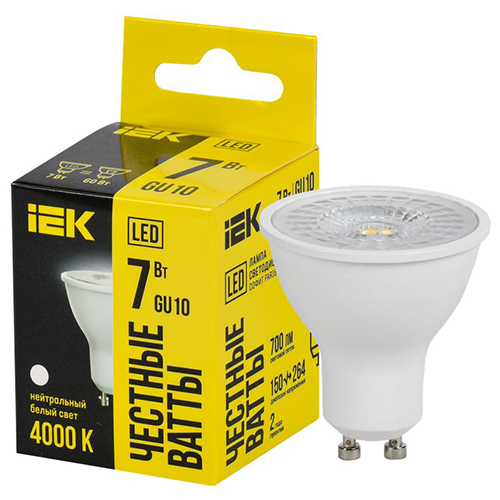 Лампа светодиодная IEK LLE-PAR16L-07-230-40-GU10 (PAR16 рефлектор, 220 В, GU10, 7 Вт, 700 лм, 4000 К, прозрачная колба)