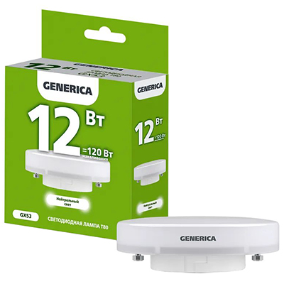 Лампа светодиодная Generica LL-T80-12-230-40-GX53-G (tablet, 220 В, 12 Вт, 1200 лм, 4000 К)