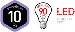 | Мощность эквивалента, Вт | 90 (лампа накаливания) |