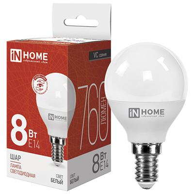 Лампа светодиодная IN HOME LED-ШАР-VC 8 Вт Е14 (P45, 760 лм, 4000 К)