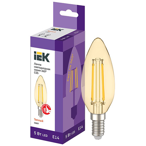 Лампа светодиодная IEK LLF-C35-5-230-30-E14-CLG (свеча, 5 Вт, 600 лм, 2700 К, золотистая колба)