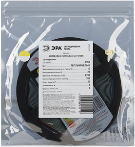 Лента светодиодная 5 м LRCOB-352-8 12W/m 8mm 24V 2700K "Эра" (COB, 24 В, 12 Вт/м, 352 led/м, 900 лм/м, IP20), цвет свечения теплый белый
