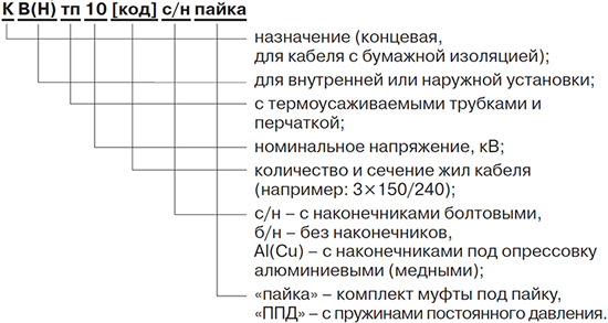 Муфты кабельные концевые сери КНтп-10 с непаяным узлом заземления предназначены для присоединения потребителей к электросети с помощью трехжильного силового кабеля с бумажной изоляцией, с броней и без брони, на напряжение до 10 кВ переменного тока частотой 50 Гц.