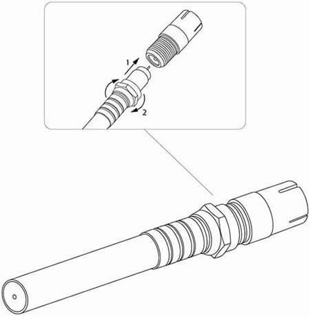 | Разъем F устанавливается на кабель методом накрутки гильзы разъема на внешнюю оболочку кабеля после соответствующей зачистки контактов. Какие-либо специальные инструменты для монтажа не требуются. |