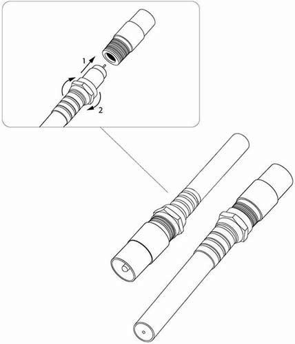 Соединение кабеля производится методом накрутки F-коннектора, после соответствующей зачистки контактов радиочастотного кабеля.