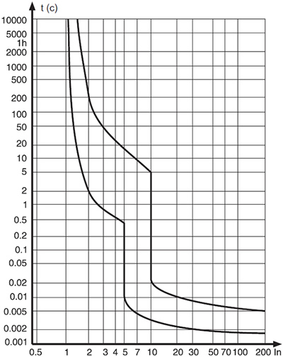 | Кривая отключения (диапазон токов мгновенного расцепления) | C |