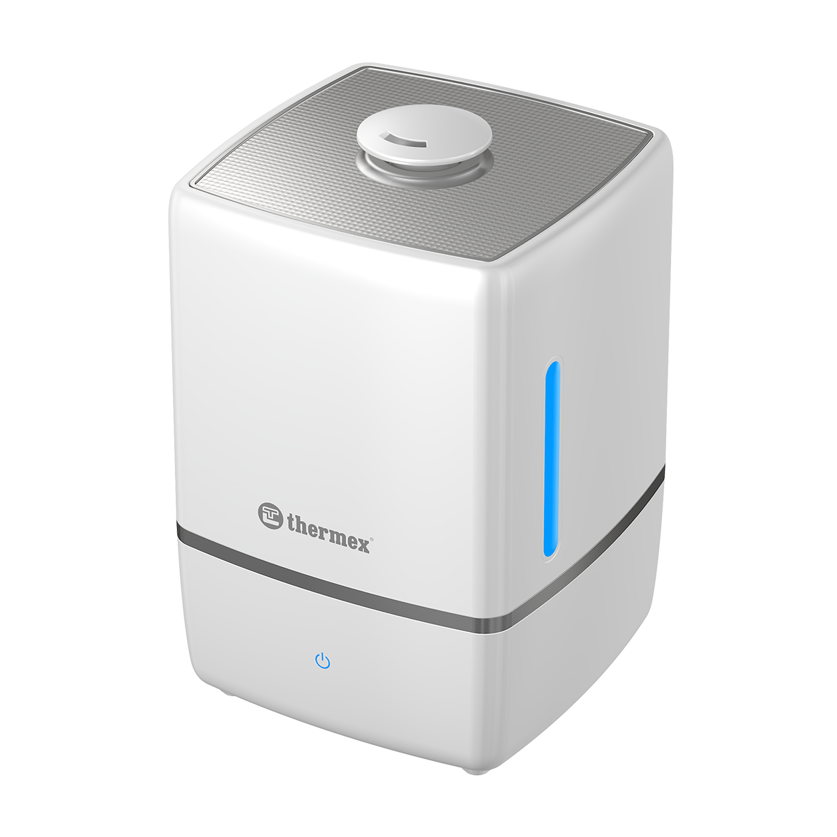 Увлажнитель воздуха Thermex Youth белого цвета объемом 5,0 л имеет сенсорное управление, ионизатор, аромакапсулу и функцию выбора мощности. Он рассчитан на площадь до 30 м², потребляет до 30 Вт и выдает до 350 мл/ч пара.