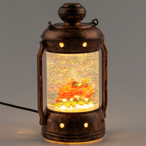 Внутри корпуса расположены блестки, создающие эффект падающего снега, и фигурки двух птичек - красных кардиналов, которые подсвечиваются светодиодом.