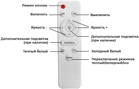 - Управление светильником при помощи настенного выключателя или пульта дистанционного управления.