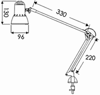 Светильник серии "Надежда" с двухколенной асимметричной стойкой на струбцине.