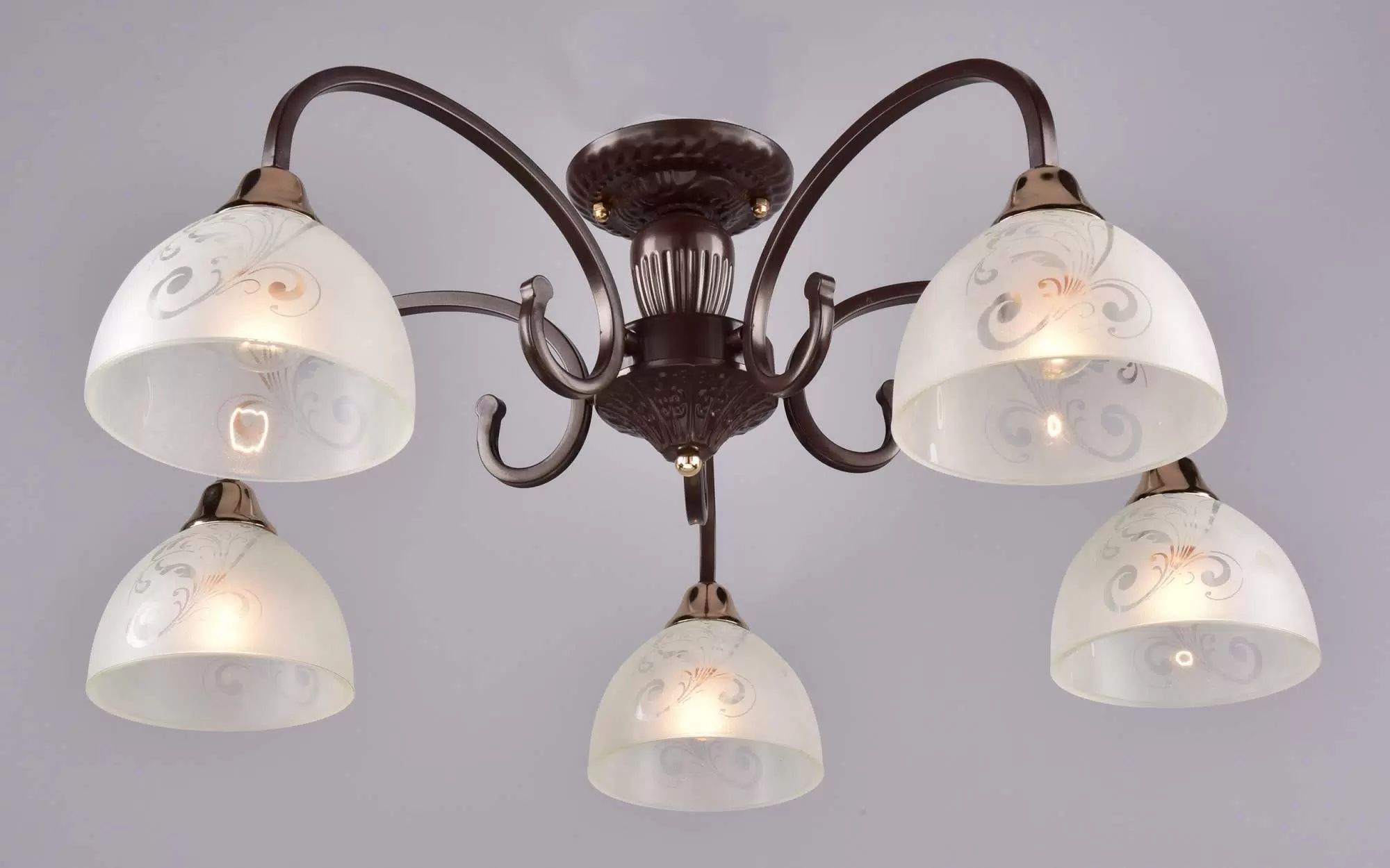 Светильник потолочный "Россвет" РС20953 BRN+FG/5C "Краковяк" (5 х 60 Вт, Е27), коричневый / золото