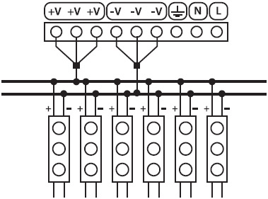 - При соединении соблюдайте полярность, соответствующую маркировке контактов на ленте и источнике питания.
