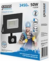 Прожектор светодиодный Gauss 628511350 Elementary-S (50 Вт, 3450 лм, 6500 К, IP65) с датчиком движения, черный
