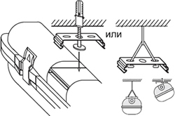 - Наметить и просверлить два отверстия для установочных кронштейнов на поверхности стены или потолка по месту установки.